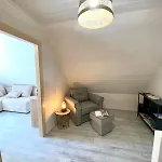 The chalet is appointed with a flat-screen TV with satellite channels, featuring comforts, such as an iron and ironing board, and climate control. The Mikolajki accommodation comes with a bathroom with a separate toilet, a shower, and a sink. A hair dryer, free toiletries, and bathrobes are also available.